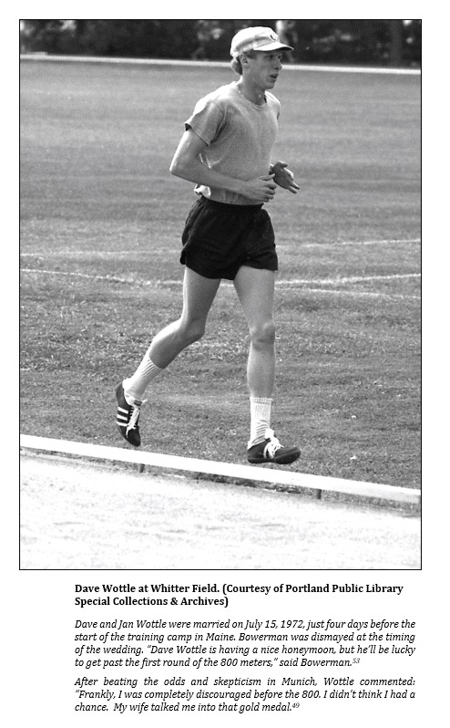 You can imagine the delight of the Project 72 team when the historic photos of the 10-day training camp in Maine included the picture of newlyweds Dave and Jan Wottle jogging together at Whittier Field. And while the two make fair "movie doubles" for the couple, they are not the Wottles. It was the author, Todd Coffin, who first associated the capped runner and apparent running companion with the newly married Wottles. The photo offered a compelling backdrop for sharing Jan Wottle's role in supporting Dave through his injuries and stoking his confidence for what turned out to be an historic gold medal run in the 800 meters.